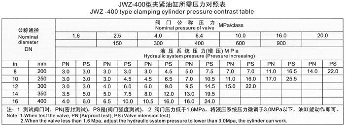 5.1 JWZ-100型 閥門(mén)公稱(chēng)通徑與公稱(chēng)壓力試驗(yàn)范圍