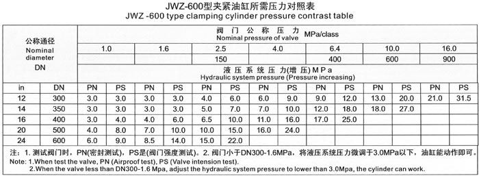The test range of valve nominal diameter and nominal pressure for JWZ-300 model