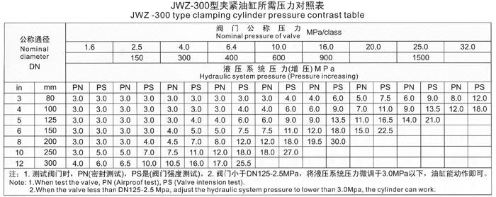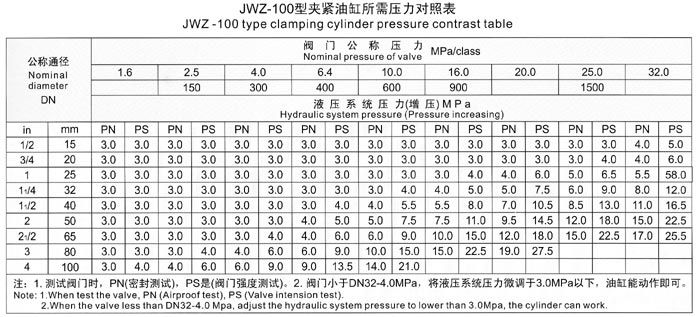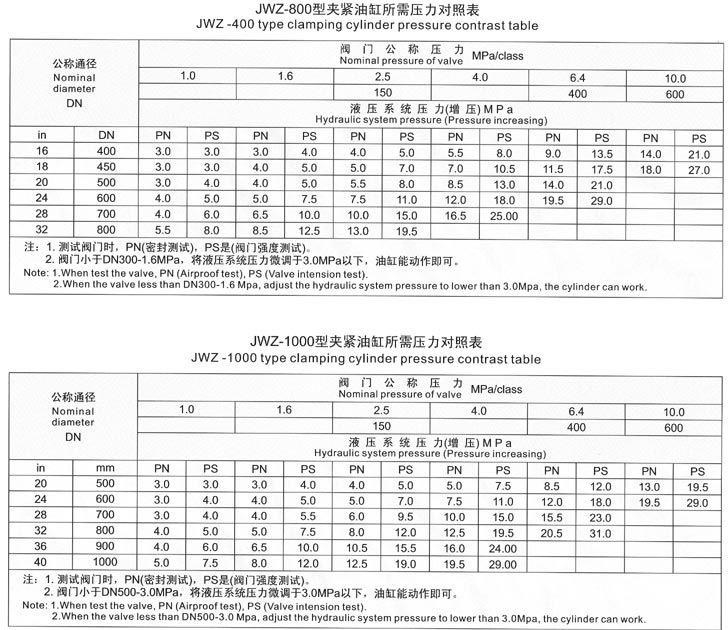 五、測試閥門時,首先根據被試閥門試驗壓力,要求參照《壓緊油缸所需壓力對照表》中液壓壓緊系統(tǒng)壓力值,進行增壓壓力調節(jié),嚴禁增壓壓力值超高、防止被試閥門變形損壞。