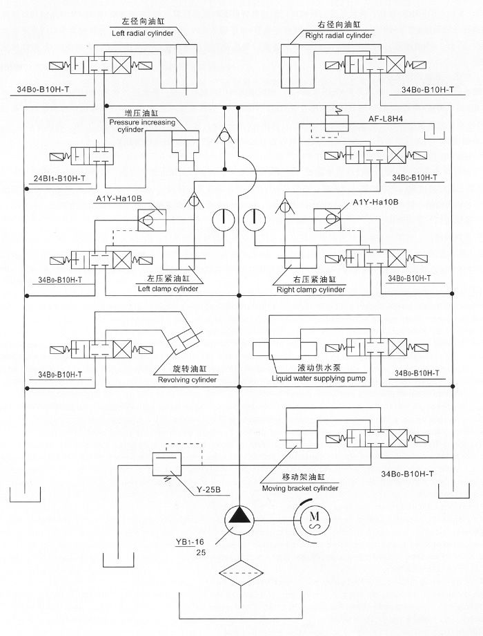 三、接通電源,按油泵啟動按鈕,檢查電機轉動方向,是否正確(順時針方向)進行5—1 O分鐘空載運轉后,調節(jié)油泵壓力在5 0MPa進行試機,各種動作,檢查各管路有無泄漏,發(fā)現不良現象,應立即停機排除。