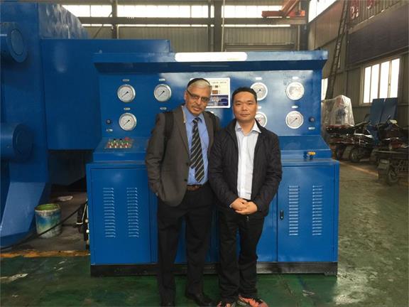 近日,印度(IVC)閥門公司INDIAN VALVE PVT.LTD總裁Mukherjee先生親自來浙江優機機械科技有限公司驗收1月份定制的蝶閥、球閥試驗臺,這次訂購的設備是優機公司國家專利產品:ZL 2014 2 0194312.6,液壓系統合理節能,操作人性化設計,是1月份該閥門公司技術部經理Tomy 先生來中國實地考察各大廠家生產工藝及企業資質后精心篩選確定下來的采購設備,這次采購的設備是代替IVC公司原有老式閥門測試臺主要水壓和氣壓試驗16”-32”的蝶閥和球閥。
